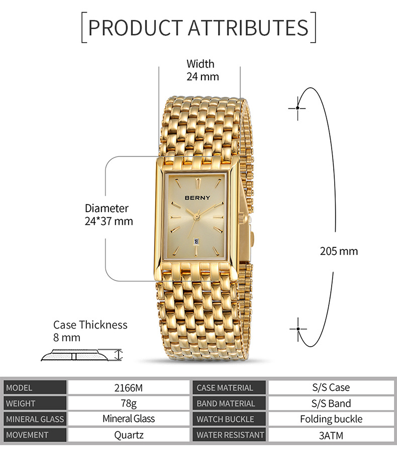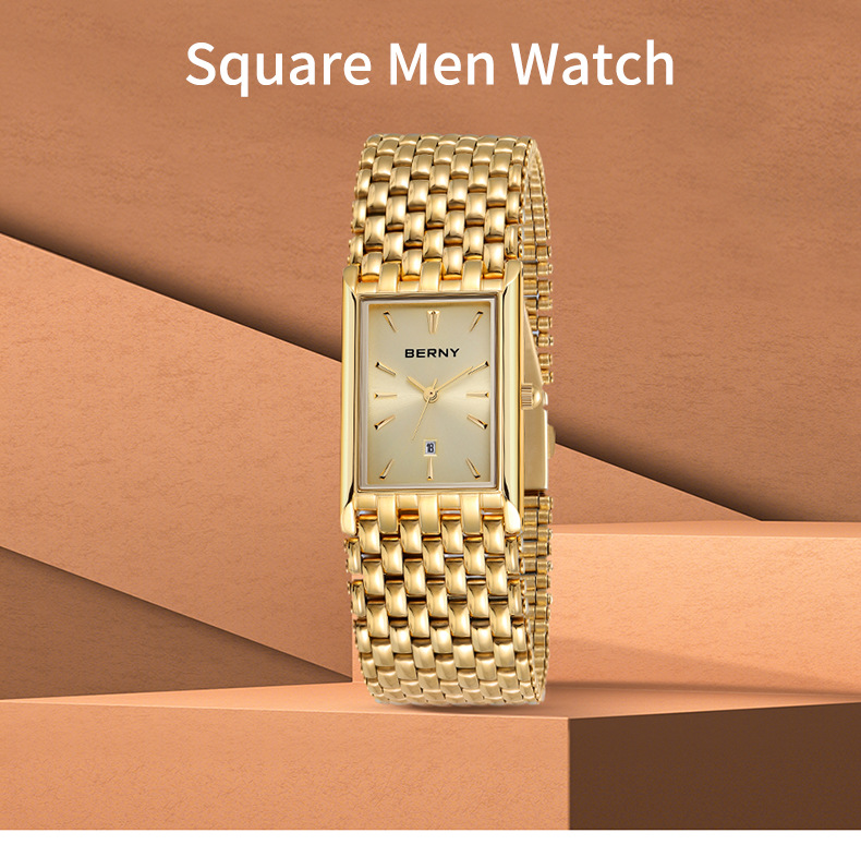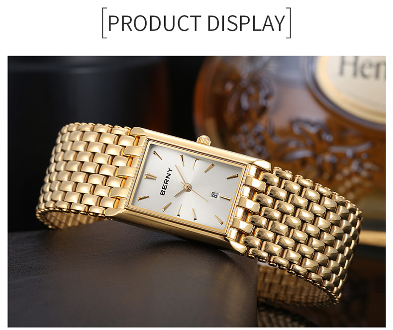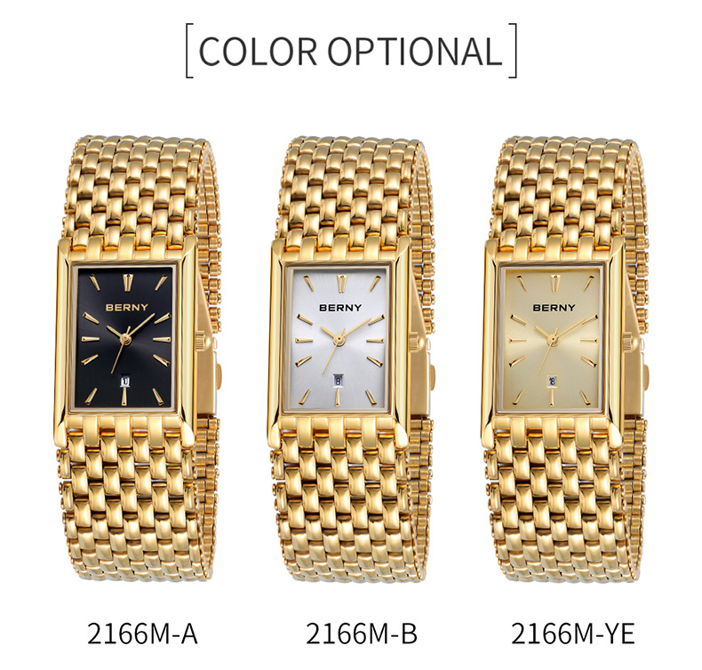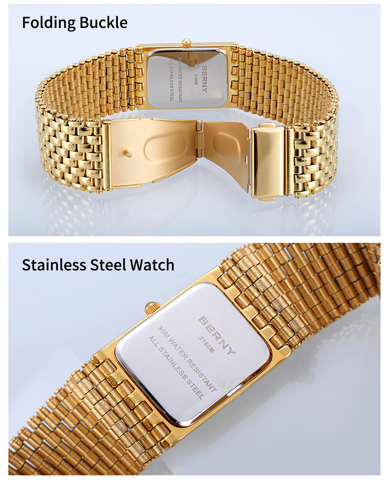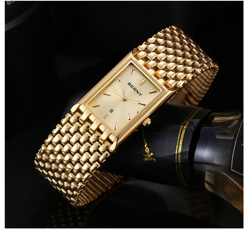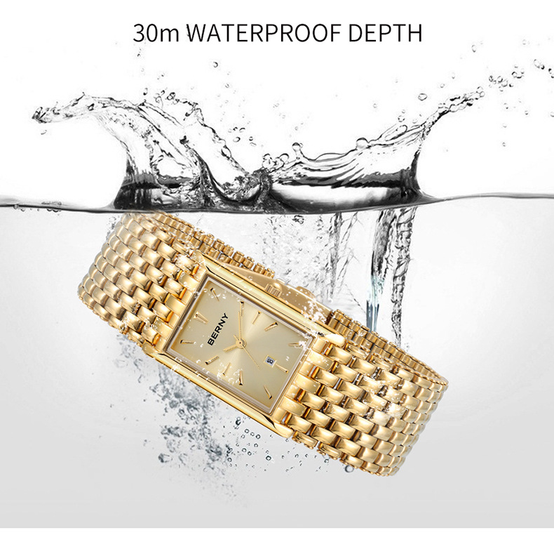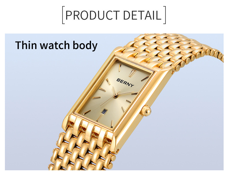 Ultra-thin Gold Quartz Watch Rectangular Stainless Steel Band Waterproof Couple Watch