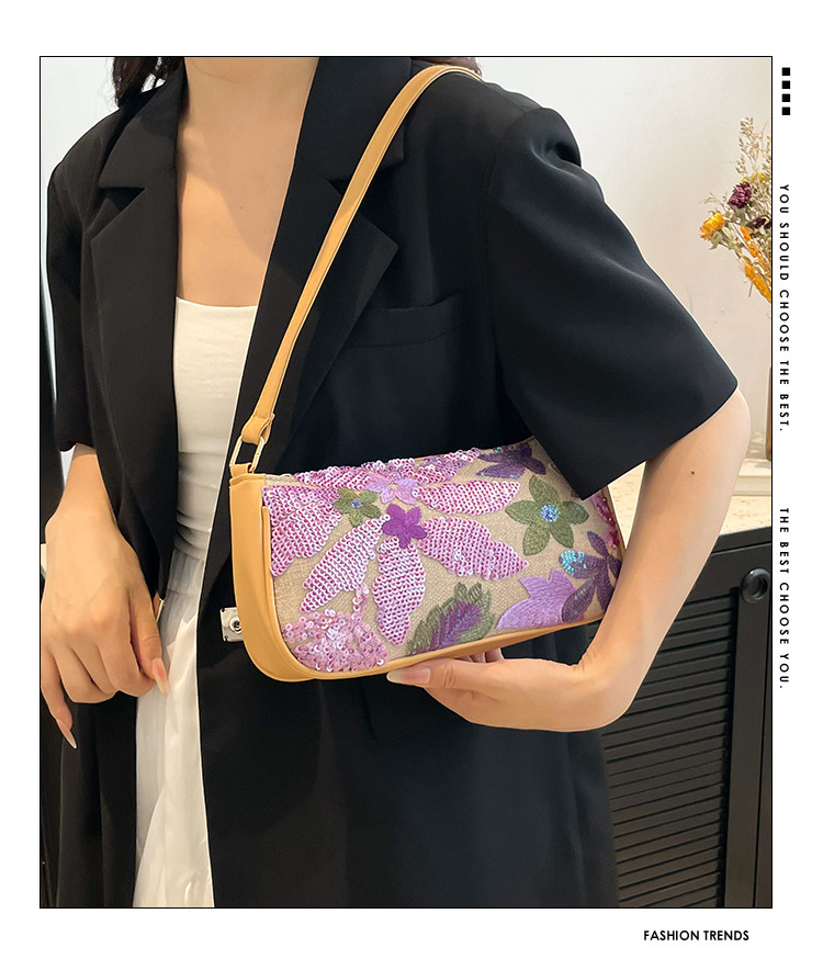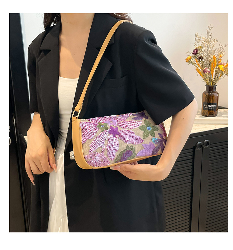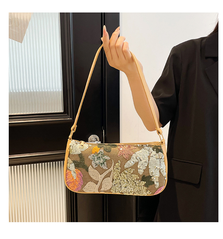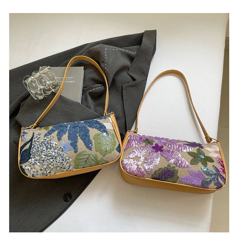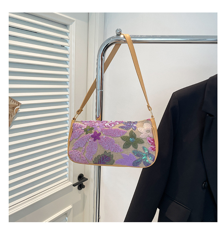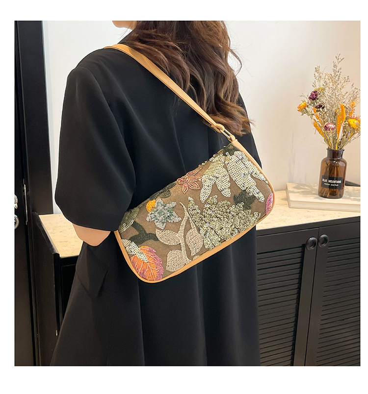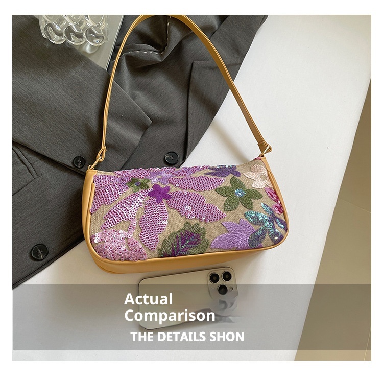 Women's Colorful Sequins Retro National Style High-grade Shoulder Bag
