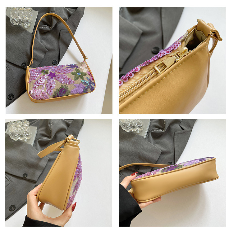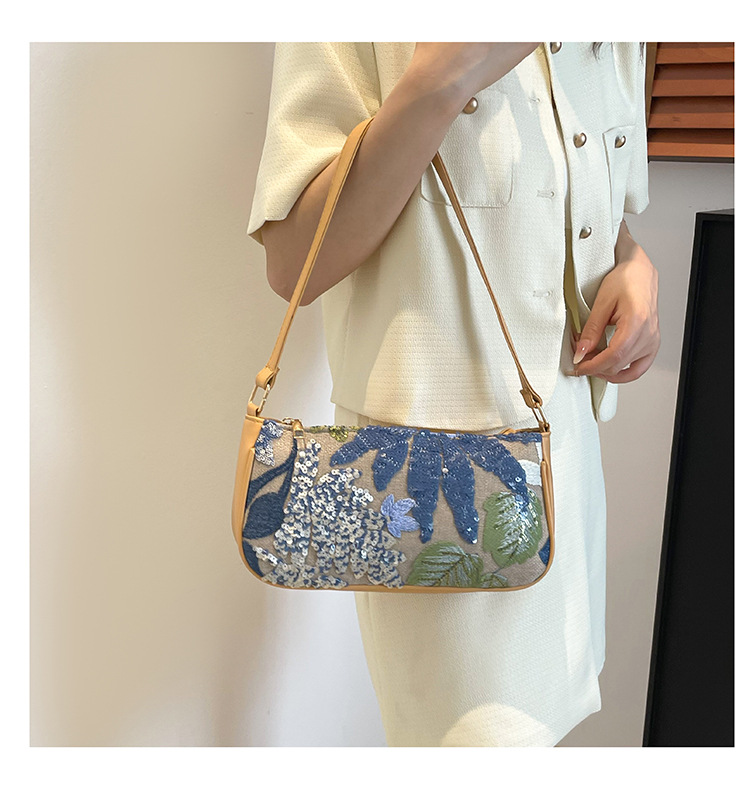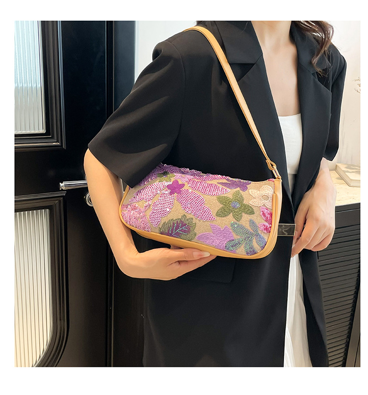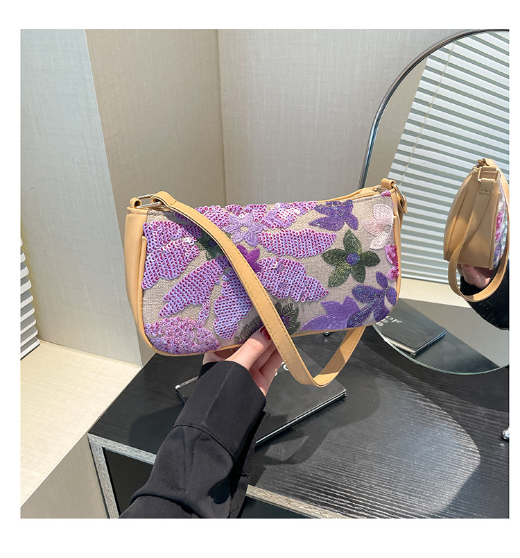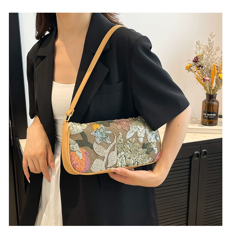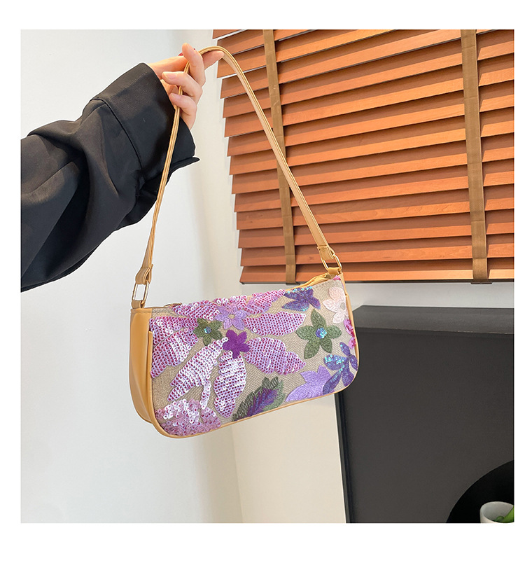 Women's Colorful Sequins Retro National Style High-grade Shoulder Bag